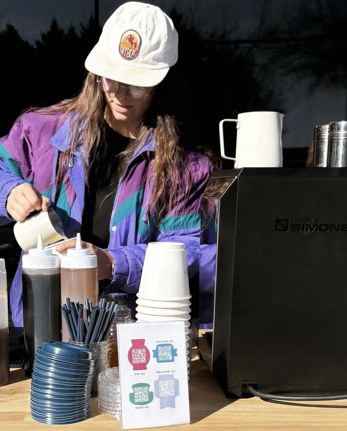 Our cart is a full shop on wheels. We serve our cafe espresso based favorites like cappuccinos, lattes, americanos, and cortados. A rotation of seasonal house made syrups will be available.